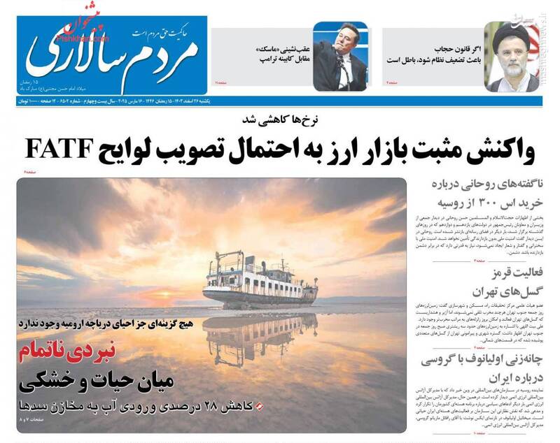 منبع: مشرق ? عکس/ صفحه نخست روزنامههای یکشنبه ۲۶ اسفند ۱۴۰۳