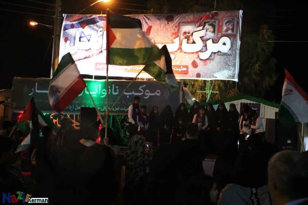 مراسم مداحی، حماسه خوانی و دمامه زنی همراه با فریاد مرگ بر اسرائیل و مرگ بر آمریکا و همچنین آتش زدن پرچم رژیم صهیونیستی بخشی از برنامههای افتتاحیه موکب نانوایان روستای ده زیار کرمان بود که در حمایت از مردم و کودکان بیگناه غزه انجام شد.
