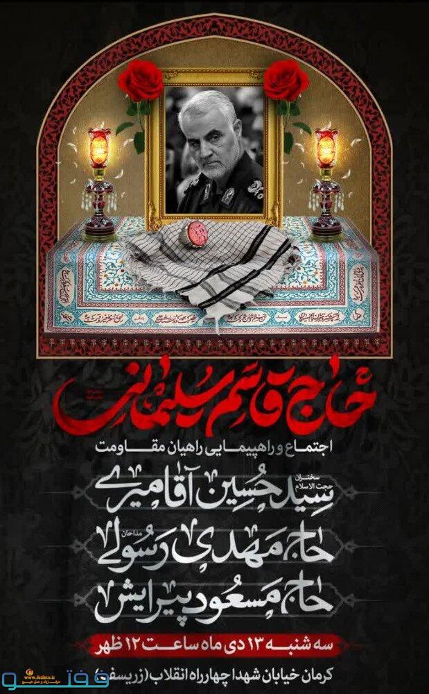 فت فتو/کرمان همزمان با سومین سالگرد شهادت سردار حاج قاسم سلیمانی، اجتماع و راهپیمایی “راهیان مقاومت” در شهر کرمان برگزار می شود.