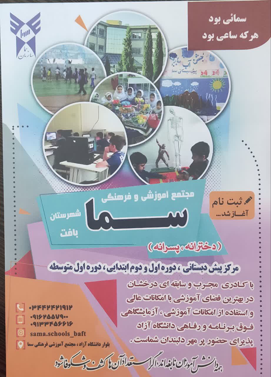 در قلب شهرستان بافت، حرکتی نوآورانه در جریان است که توجه هر والد دغدغهمندی را به خود جلب میکند. مجتمع آموزشی و فرهنگی “سما”، وابسته به دانشگاه آزاد اسلامی، از پیشدبستانی تا دوره اول متوسطه، مسیری را طراحی کرده که پاسخی مستقیم به حیاتیترین پرسش امروز خانوادههاست: آیا فرزند من برای رقابت در جهانی که هنوز شکل نگرفته، آماده میشود؟