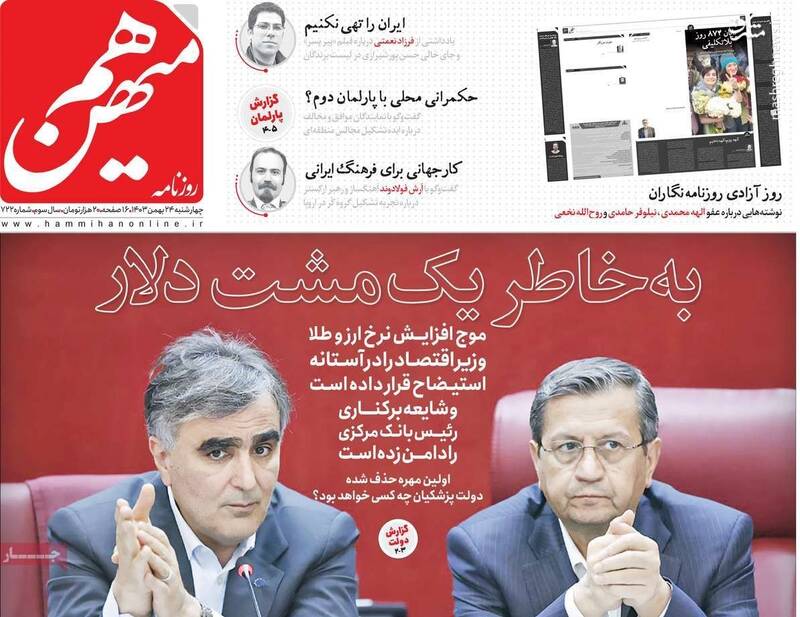 ماجرای دلار و سکه مورد توجه رسانههای اصلاحطلب قرار گرفته است، روزنامه هممیهن در تیتر یک خود نوشته است: