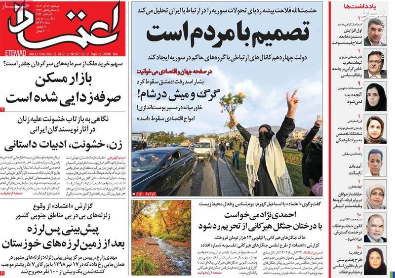 صبح روز یکشنبه در شرایطی برای ایران آغاز شد که خبر سقوط دمشق و خروج بشاراسد از پایتخت سوریه پس از ۲۴سال حکومت بر سوریه، افکار بسیاری از ایرانیان را به خود معطوف کرده بود. این ماجرا مورد توجه بسیاری از روزنامههای اصلاحطلب قرار گرفته است.