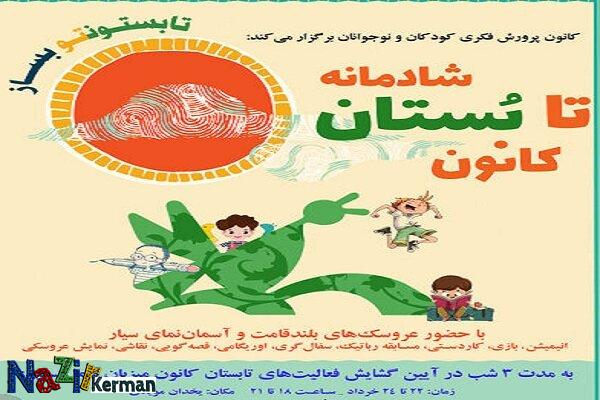 یخدان مویدی مرکز فرهنگیهنری شماره سه کانون شهر کرمان و میزبان این ویژه برنامه با عنوان تابُستان کانون و با شعار تابستونتو بساز خواهد بود.