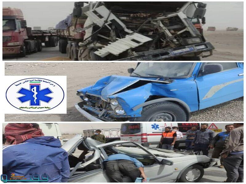 در عین حال رییس مرکز حوادث و فوریت های پزشکی دانشگاه علوم پزشکی رفسنجان از برخورد دو تریلی و یک خودرو سواری در محور انار به یزد همزمان با طوفان شن خبرداد و اعلام کرد که این حادثه سبب تصادف چند خودرو و فوت مردی ۴۰ ساله شد.