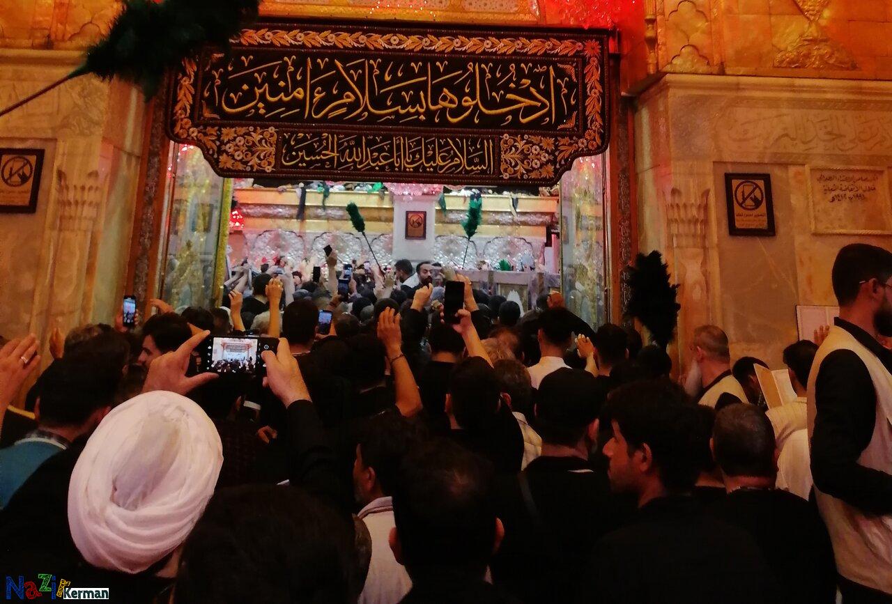 کربلا_ پنجشنبه شب خیابان بین الحرمین و صحن حرم مطهر امام حسین (ع) درشهر کربلا مملو از خیل عظیم عاشقان حسینی بود ودسته جات عزاداری با ورود به صحن حرم مطهر به عزاداری پرداختند.