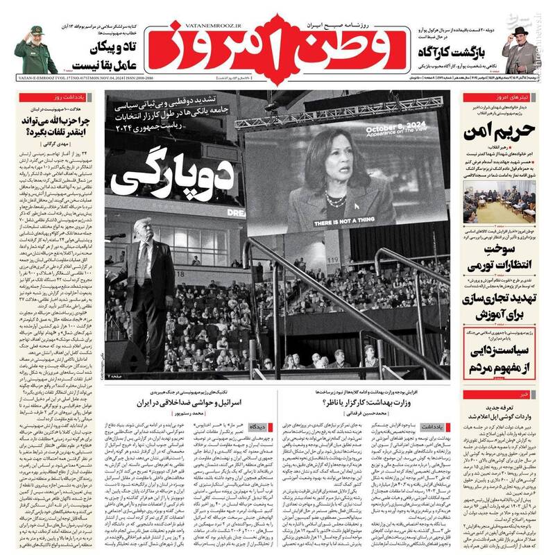 منبع: مشرق ? عکس/ صفحه نخست روزنامههای دوشنبه ۱۴ آبان ۱۴۰۳
