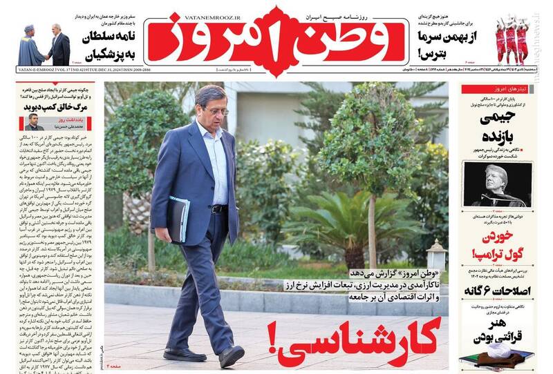 جولانی وابستگی خود به اسرائیل را جار زد، دلار؟! اسمش را هم نیار!، نرخ آمریکایی در سبزه میدان، رویکرد ایران گسترش صلح در منطقه، تیتر برخی از روزنامههای سهشنبه ۱۱ دی ۱۴۰۳ است.