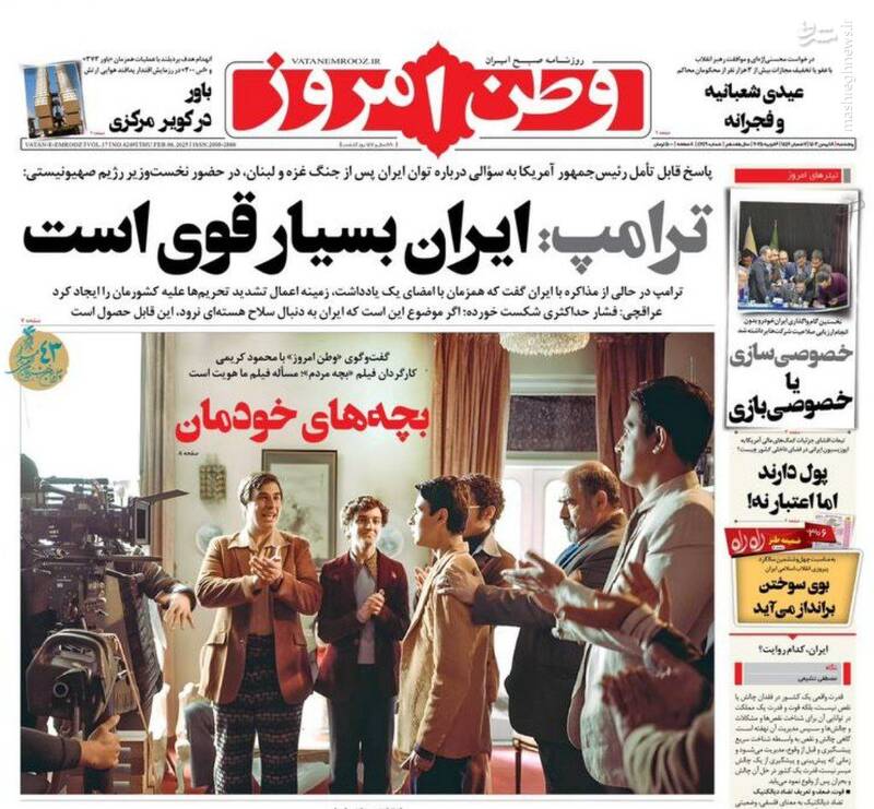 ترامپلماسی، طرفداران مذاکره با آمریکا پاسخ بیشرمانه ترامپ را بشنوند!، مهدویت، قلب تپنده انقلاب اسلامی، از جمله تیترهای روزنامههای پنجشنبه ۱۸ بهمن ۱۴۰۳ هستند.