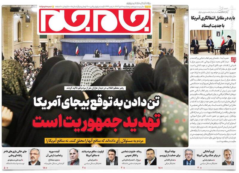 مسئولان منافع کشور را در نظر بگیرند نه ملاحظات آمریکا و اسرائیل را، به رسم برادری در التهابات منطقه، رؤیای امپراتوری ترامپی، تیتر برخی از روزنامههای پنجشنبه ۲۰ دی ۱۴۰۳ است.