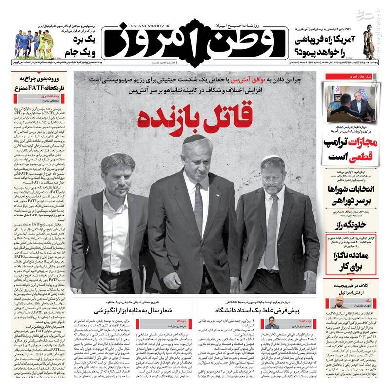آقای پزشکیان! ترامپ تروریست است مجازات او قطعی است، همسایگان اولویت اول دیپلماسی، تکرار دستپخت بایدن با سس تند، تیتر برخی از روزنامههای پنجشنبه ۲۷ دی ماه ۱۴۰۳ است.