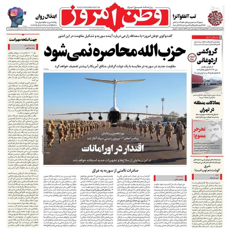 اعتراف مؤسسه نیروی دریایی آمریکا به اقتدار مثالزدنی یمن، دیکته اقتدار دفاعی به دشمن در رزمایش ۱۹ سپاه، توحش علیه تمدن غزه، تیتر برخی از روزنامههای یکشنبه ۱۶ دی ماه ۱۴۰۳ است.