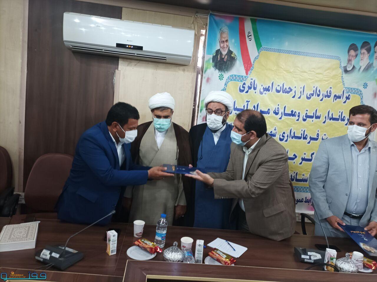 در پایان از خدمات امین باقری فرماندار سابق ریگان تجلیل و مراد آبیار به عنوان سرپرست فرمانداری این شهرستان معرفی شد.