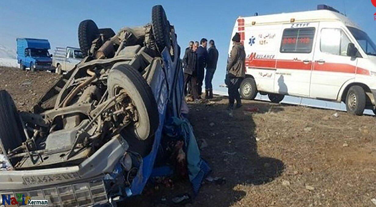 کرمان_ بر اثر واژگونی نیسان حامل ۱۷ نفر از کارگران معدن گدارسبز گوشک شهرستان بافت، ۱۳ نفر مصدوم شدند.